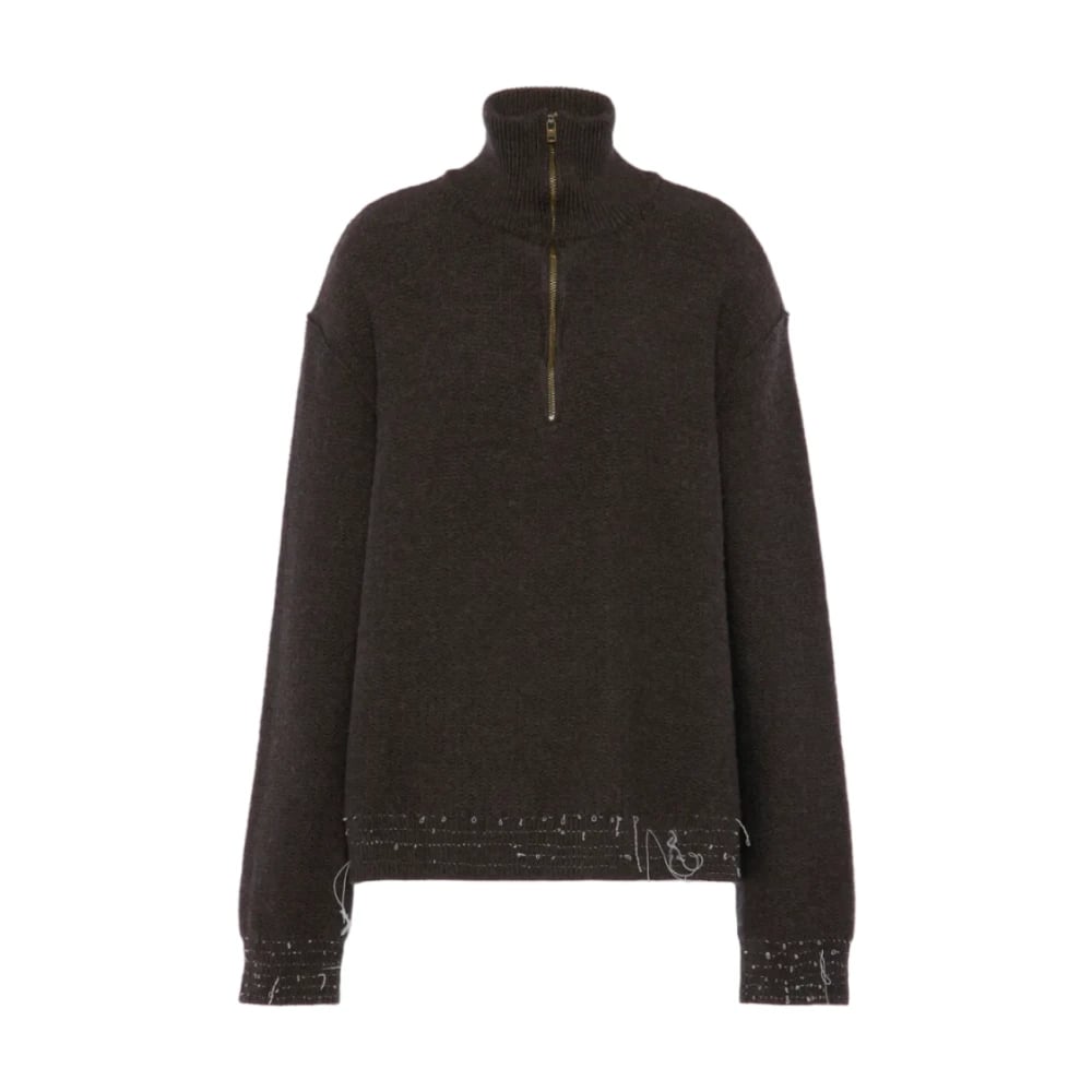 Maison Margiela, Strik , Dame, Brun, M, Uld, Uld Quarter-Zip Sweater