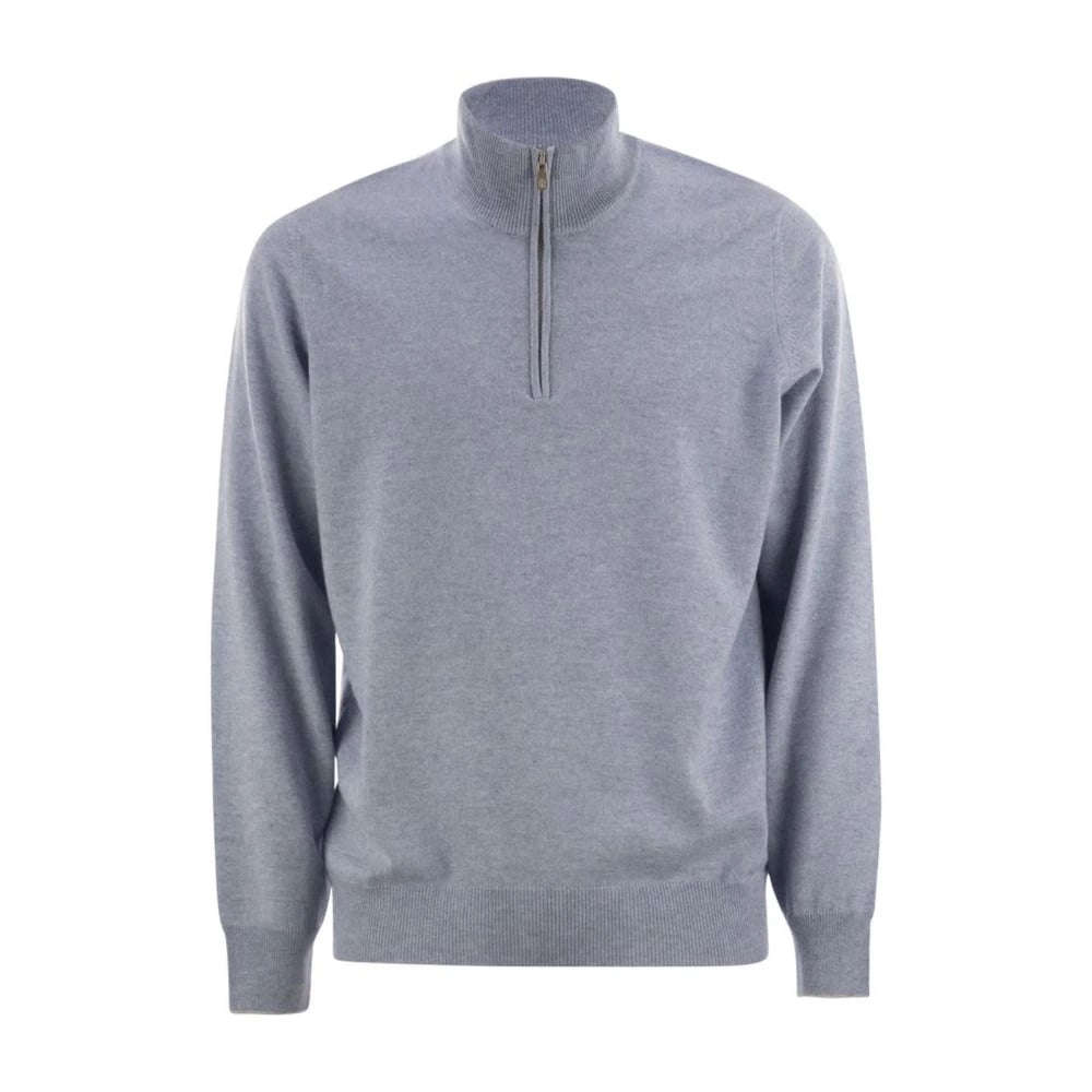 Brunello Cucinelli, Strik , Herre, Blå, 4XL, Cashmere, Mock Neck Quarter-Zip Sweater