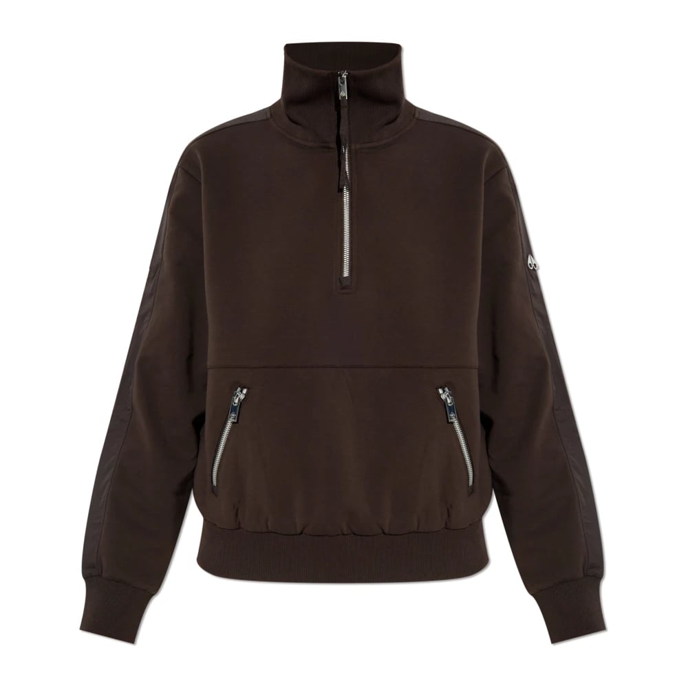 Moose Knuckles, Sweatshirts , Dame, Brun, XS, Bomuld, Mix Media Quarter Zip Sweater