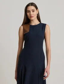 Ralph Lauren Belted Rib-Knit Puff-Sleeve Knælang Kjole