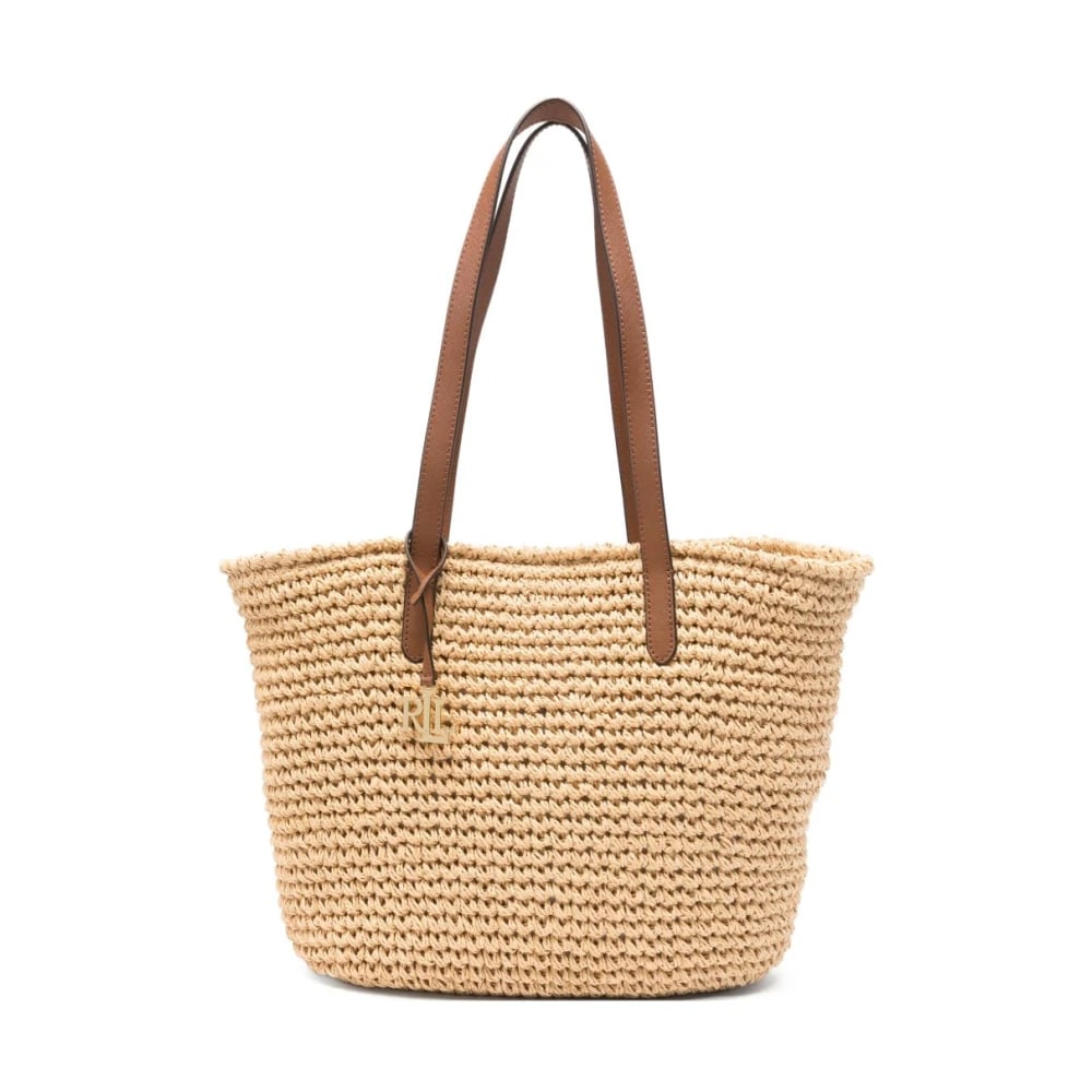 Polo Ralph Lauren, Tasker , Dame, Gul, ONE SIZE, Uld, Raffia-Leather Logo Tote