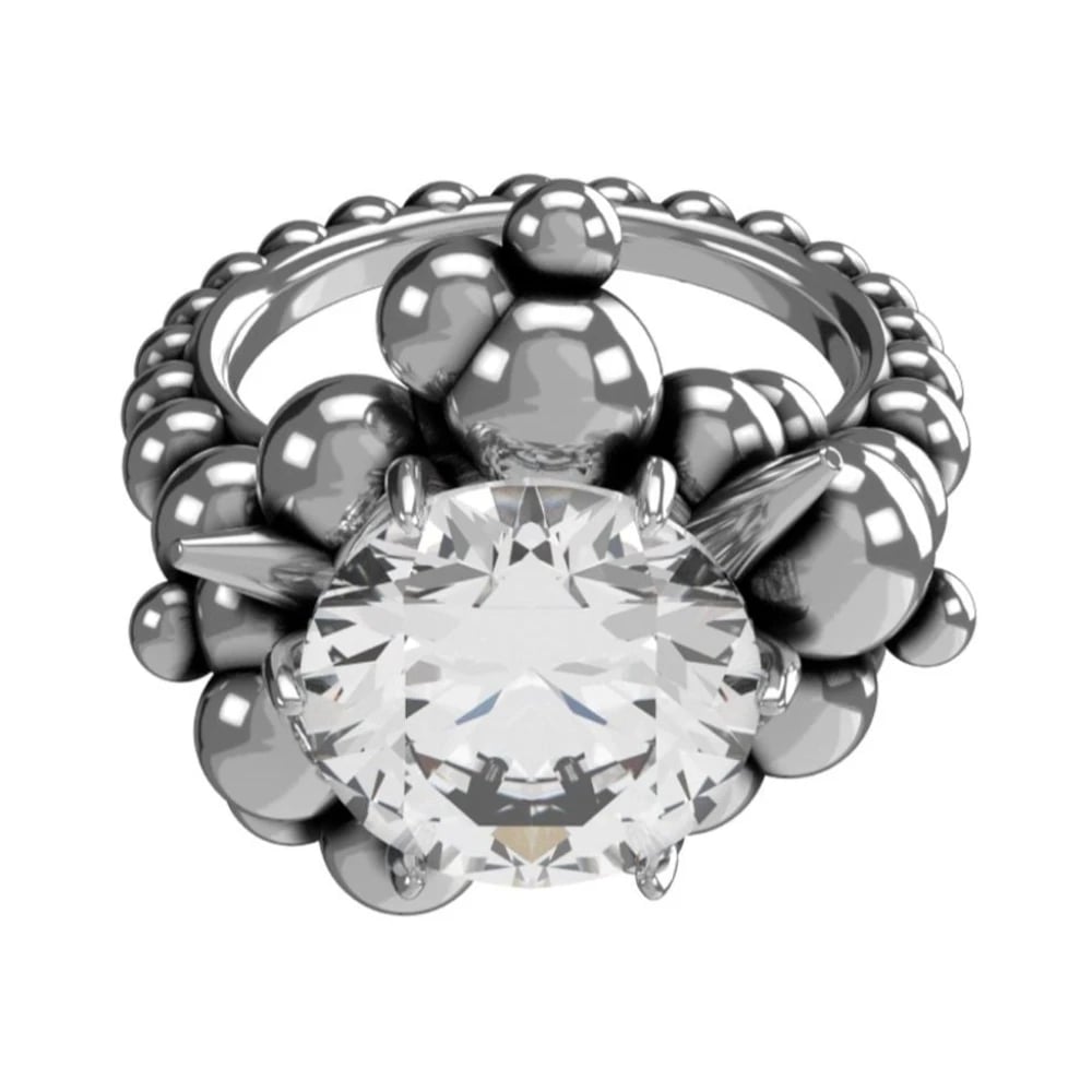 John Richmond, Accessories , Dame, Grå, ONE SIZE, Ring med spidse perler og diamant