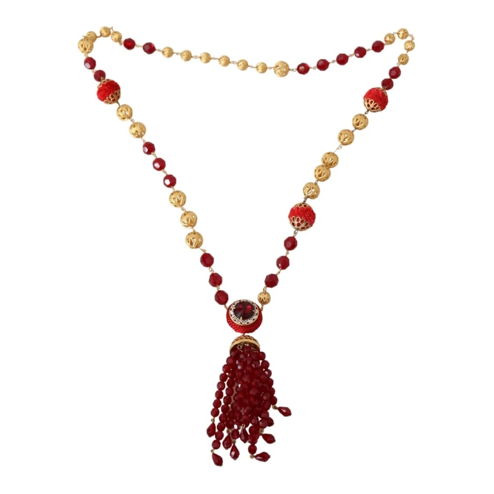 Dolce & Gabbana, Accessories , Dame, Gul, ONE SIZE, Halskæde med røde krystaller, 100% autentisk, lavet i Italien