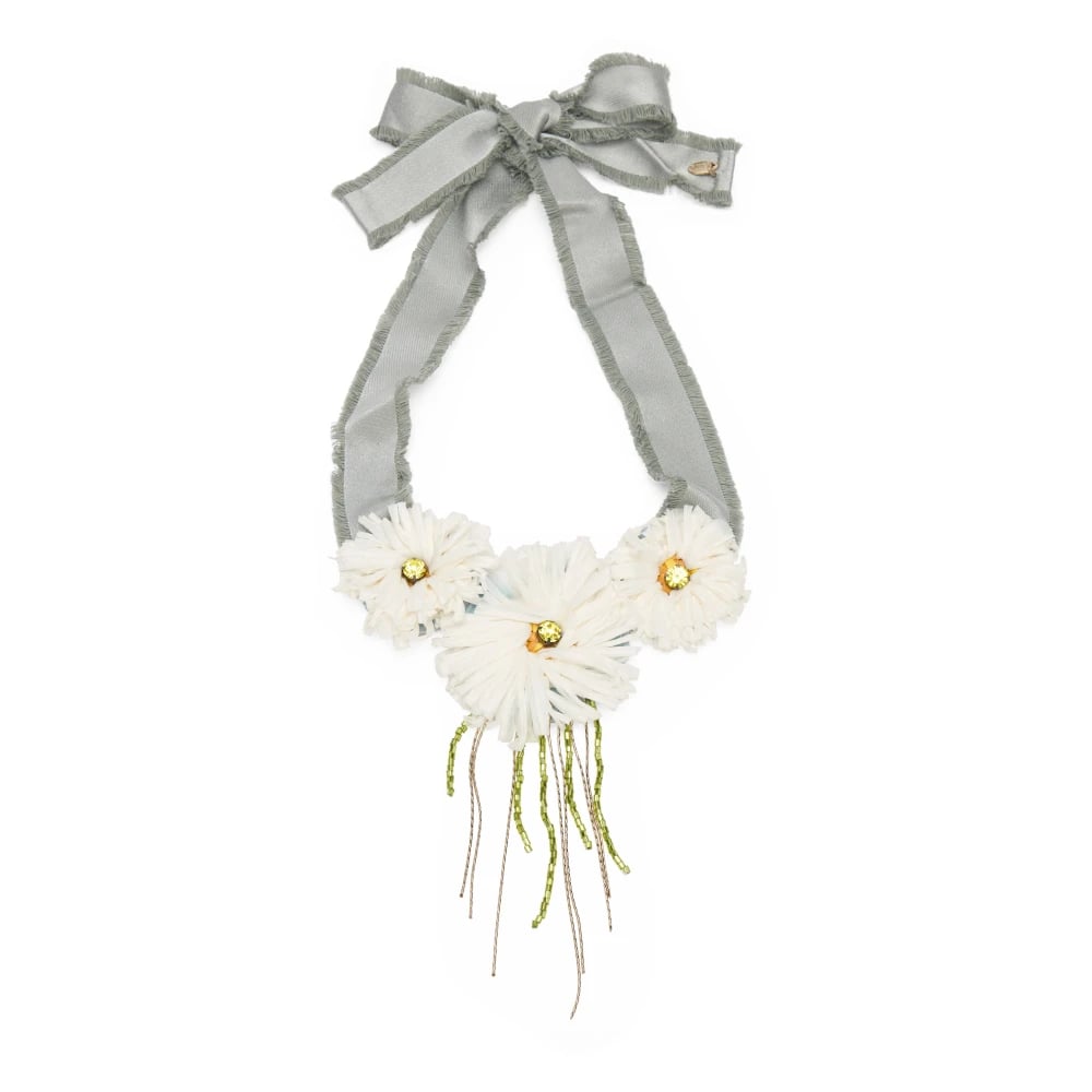 RED Valentino, Accessories , Dame, Grå, ONE SIZE, Bomuld, Elegant halskæde med skinnende hvide blomster