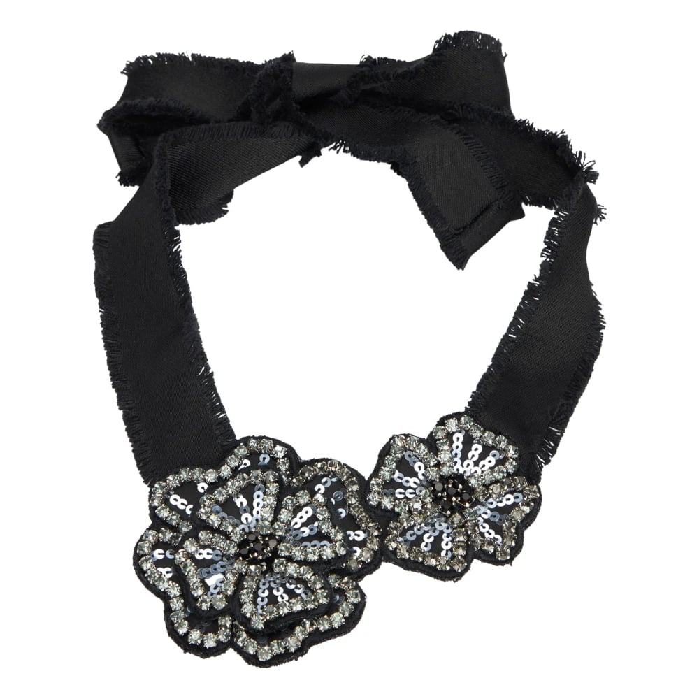 RED Valentino, Accessories , Dame, Sort, ONE SIZE, Bomuld, Elegant sort halskæde med blomsterdetaljer udsmykket med pailletter og sten