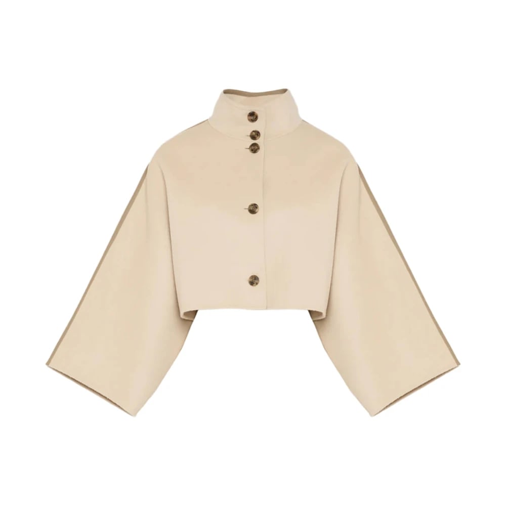 Yves Salomon, Jakker , Dame, Beige, 2XL, Cashmere, Dobbeltsidet cropped cape-jakke i cashmereblanding