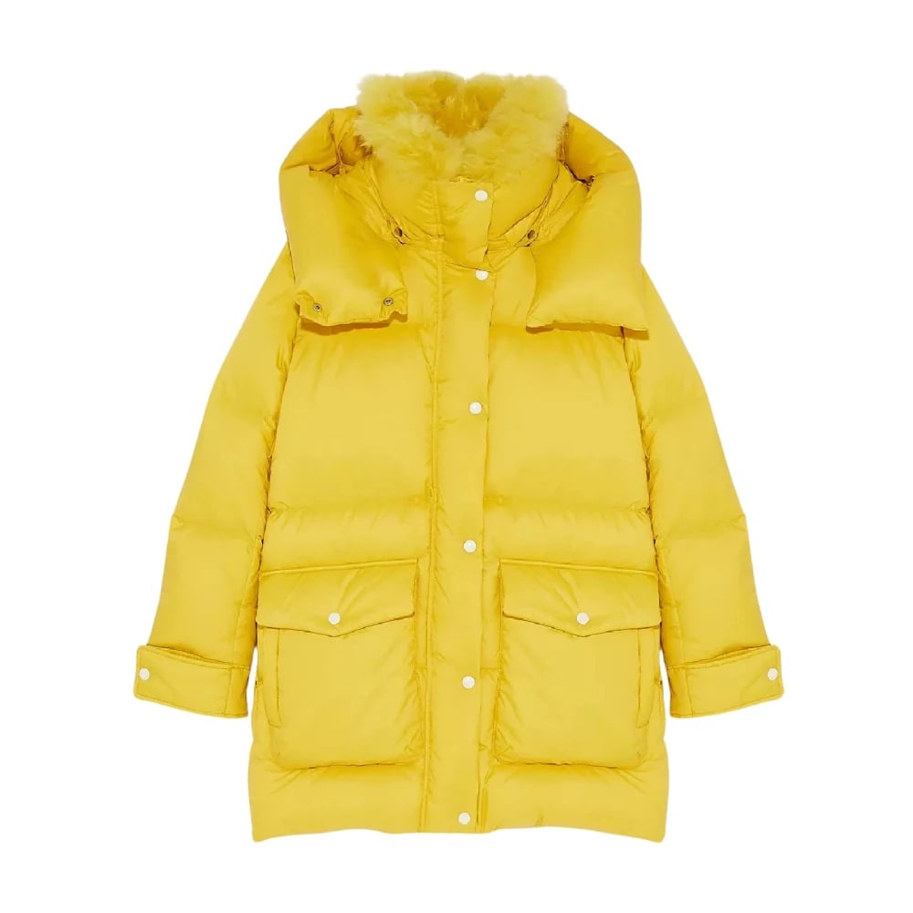Yves Salomon, Jakker , Dame, Gul, M, Uld, Gul Puffer Jakke med Uldkrave
