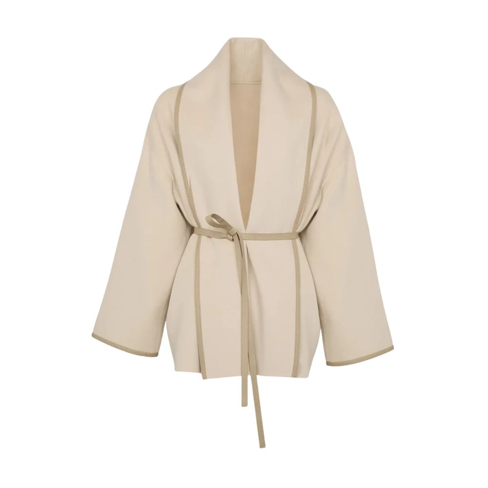 Yves Salomon, Bluser og skjorter , Dame, Beige, 3XL, Uld, Dobbeltsidet jakke med drapering i uldblanding