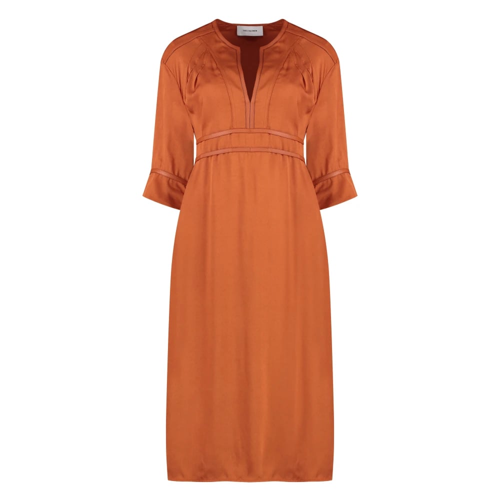 Yves Salomon, Kjoler , Dame, Orange, 3XS, Læder, Crepe Kjole med Læderdetaljer