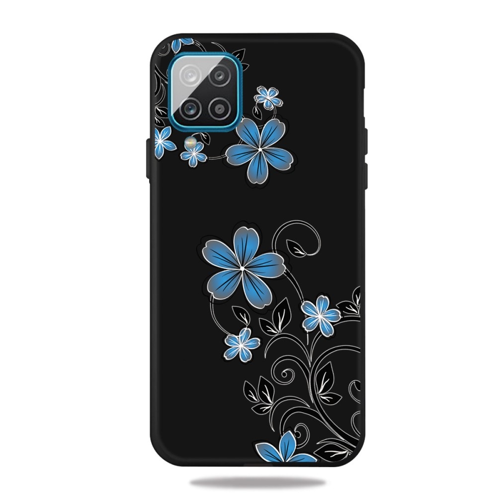 Samsung Galaxy A12 - Gummi cover - printet design - Blå blomster