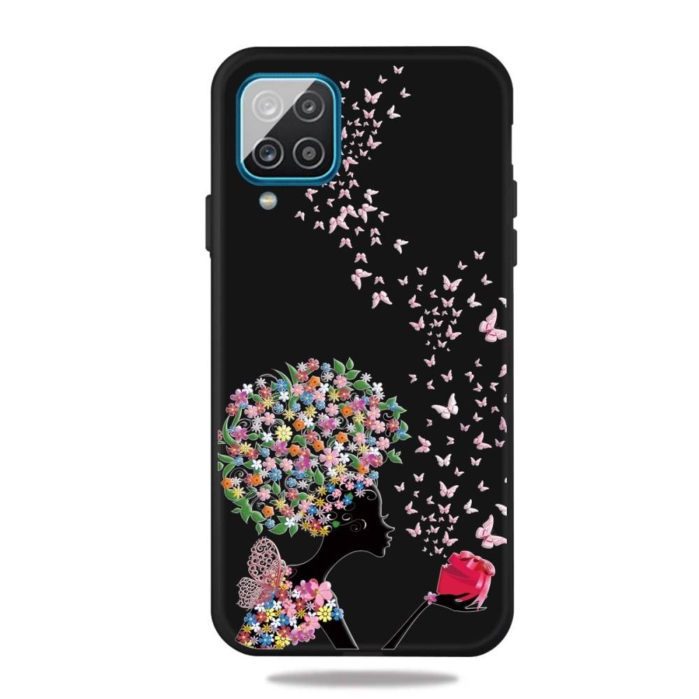 Samsung Galaxy A12 - Gummi cover - printet design - Pige & sommerfugl