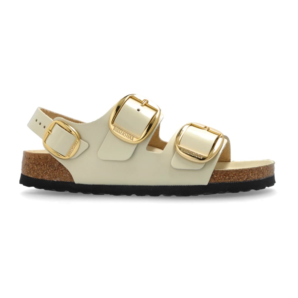 Birkenstock, Sko , Dame, Beige, 38 EU, Milano sandaler med høj glans og stort spænde, regular pasform