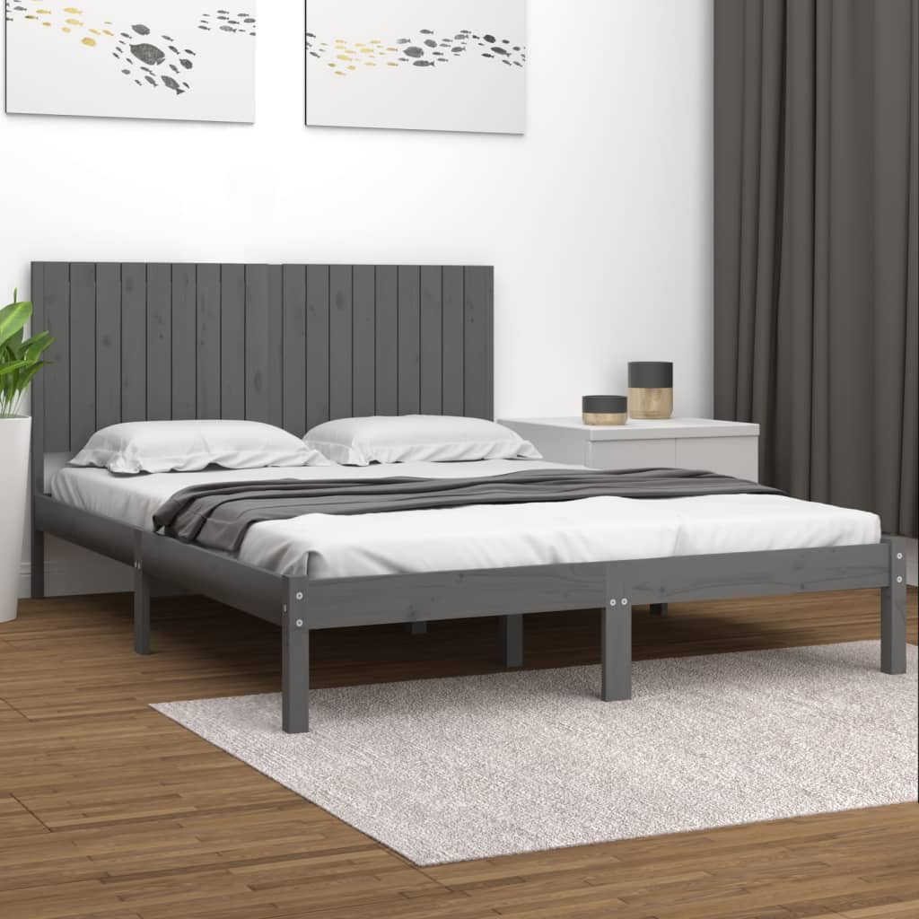 vidaXL sengeramme 180x200 cm Super King massivt træ grå