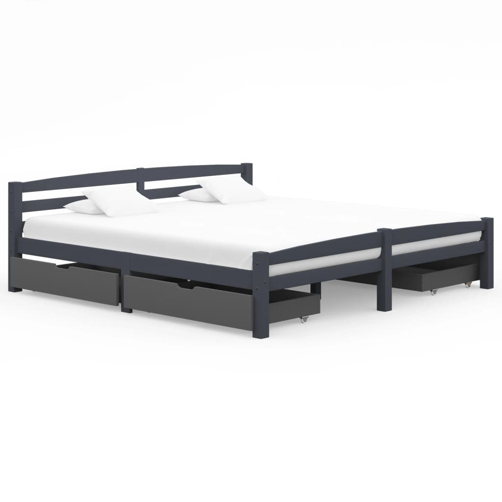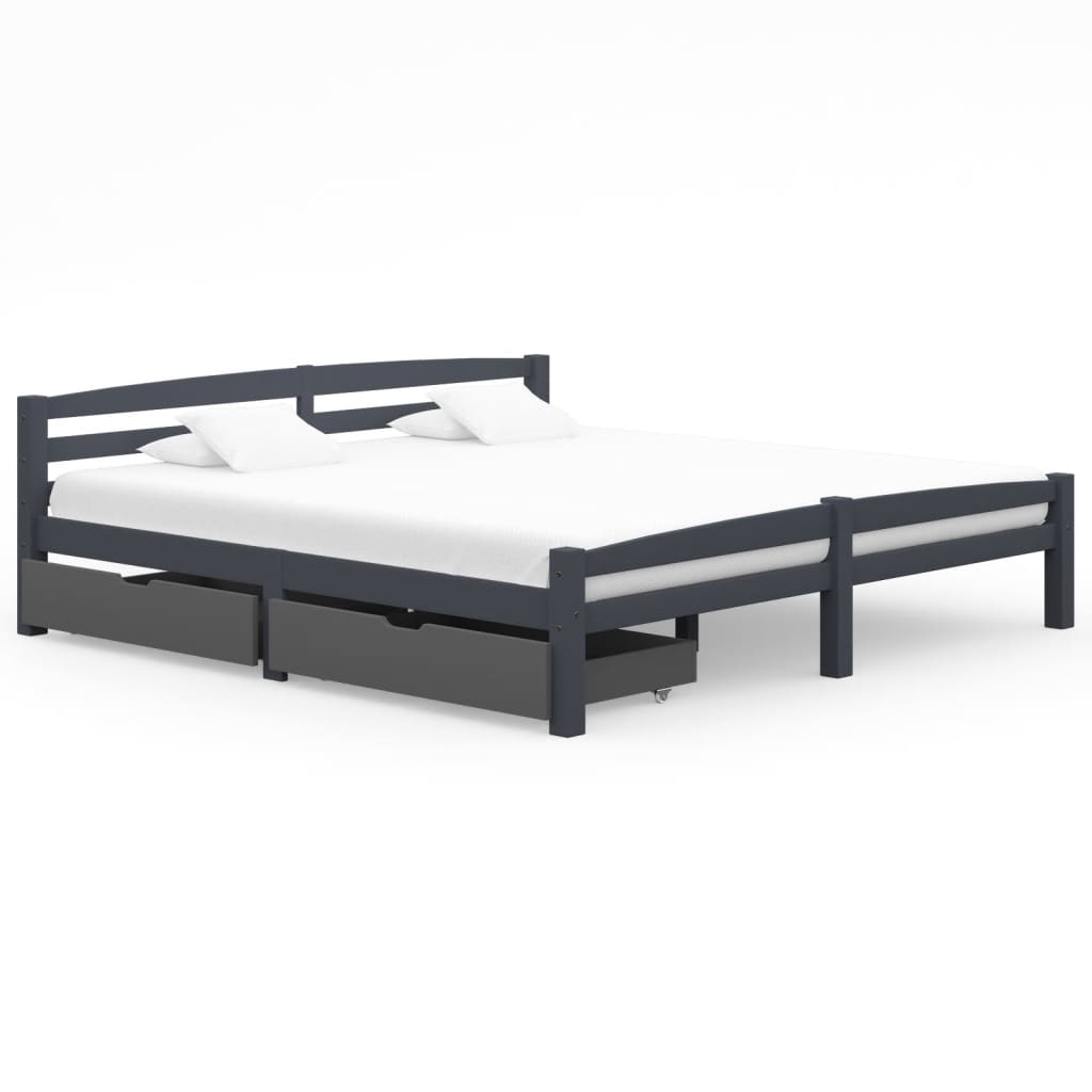 vidaXL sengestel med 2 skuffer 180x200 cm massivt fyrretræ mørkegrå