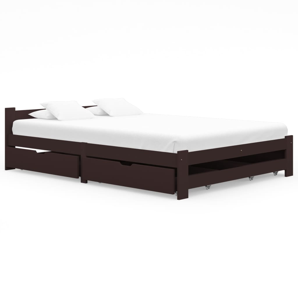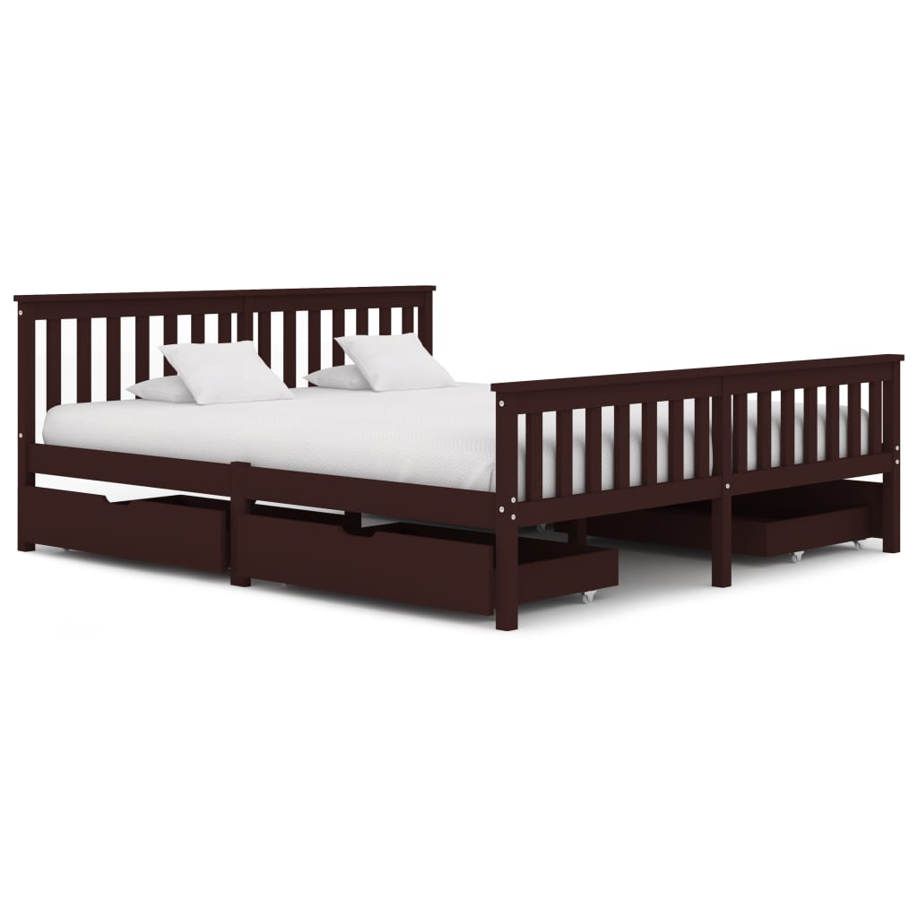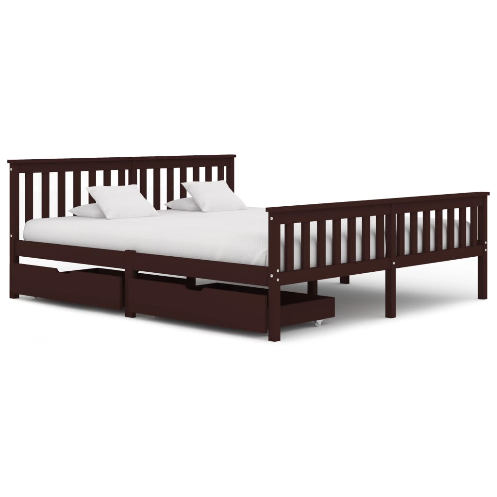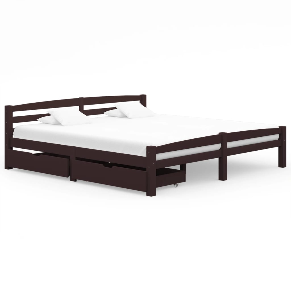 vidaXL sengestel med 2 skuffer 180x200 cm massivt fyrretræ mørkebrun