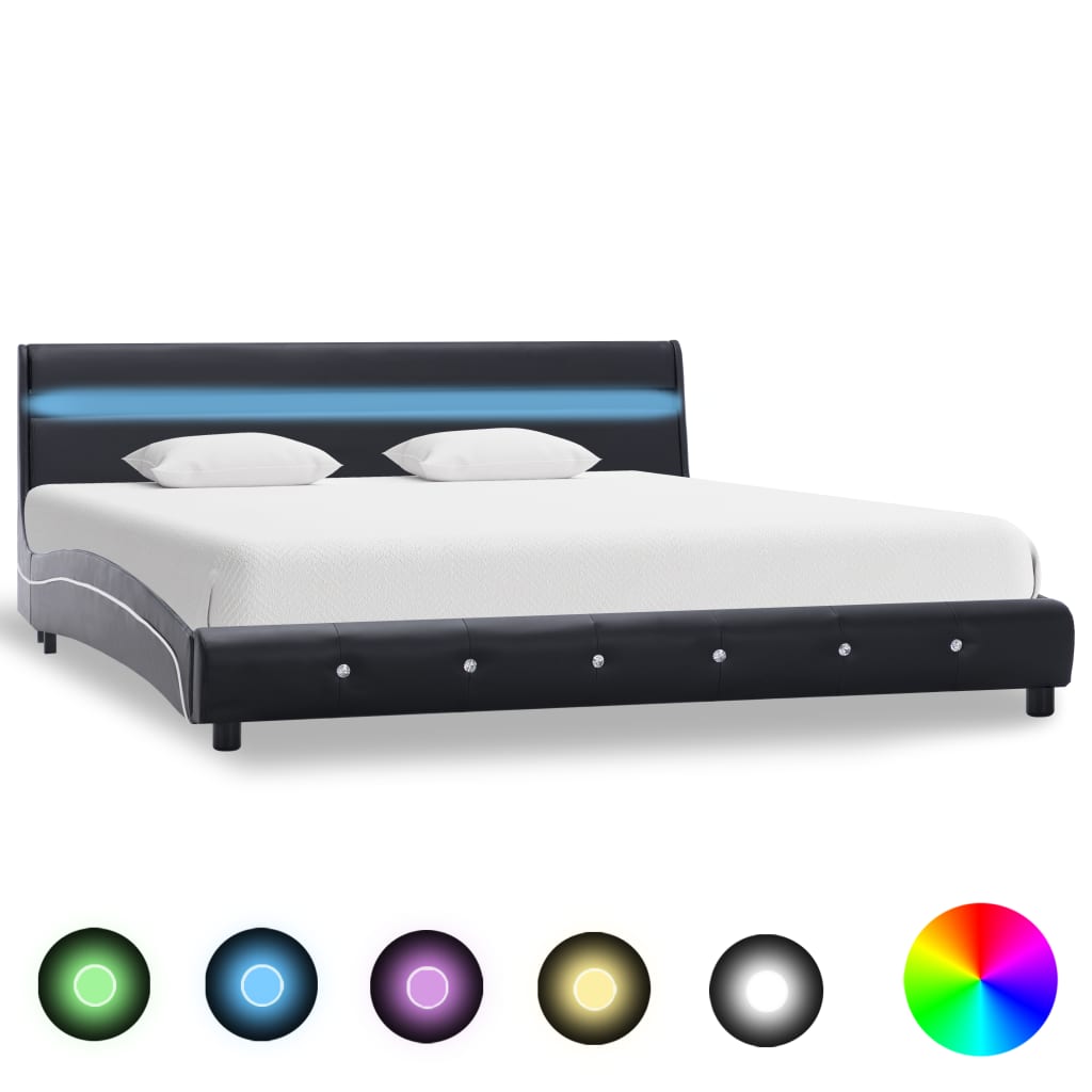 vidaXL sengestel med LED 180 x 200 cm kunstlæder sort
