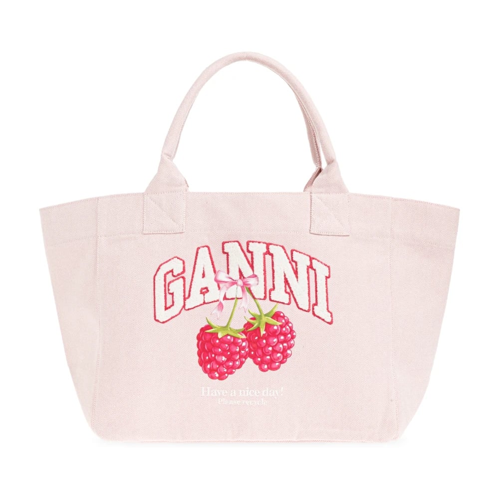 Ganni, Tasker , Dame, Lyserød, ONE SIZE, Uld, Shopper Logo Tote Bag