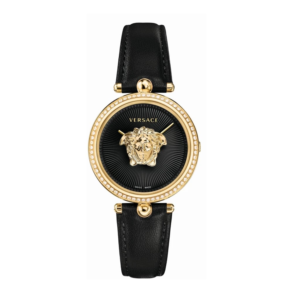 Versace, Accessories , Dame, Flerfarvet, ONE SIZE, Uld, Empire Sort Læder Guld Diamant Ur