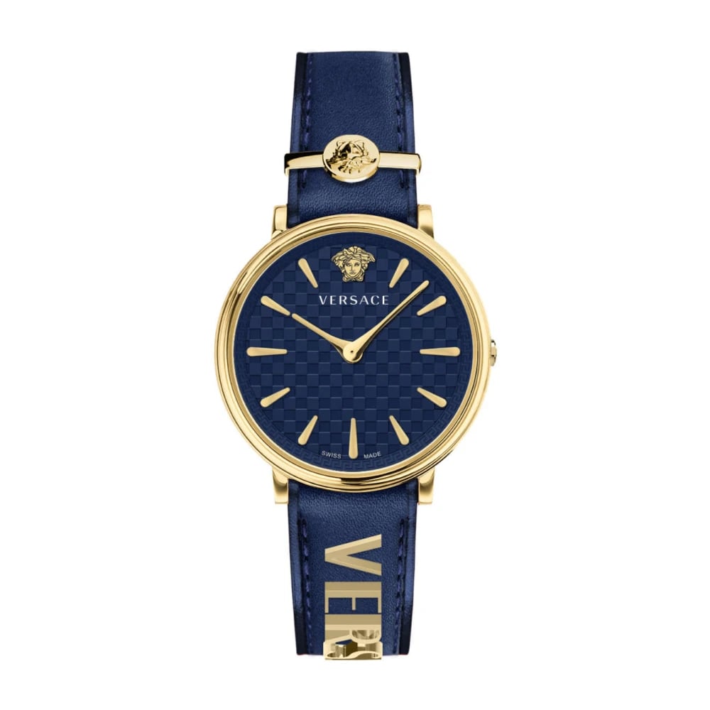 Versace, Accessories , Dame, Blå, ONE SIZE, Uld, V Circle Blå/Guld Læder Ur
