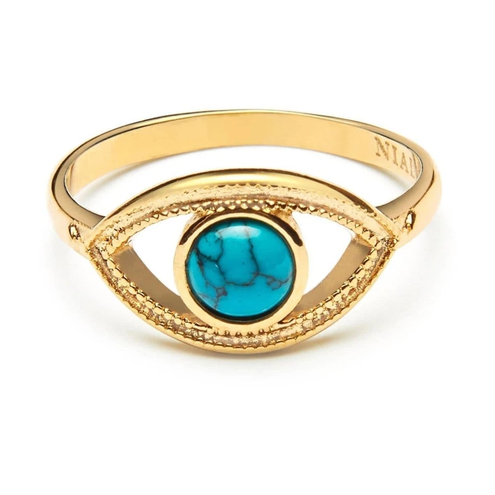Nialaya, Accessories , Dame, Gul, 52 MM, Skyfall Turquoise Evil Eye Ring