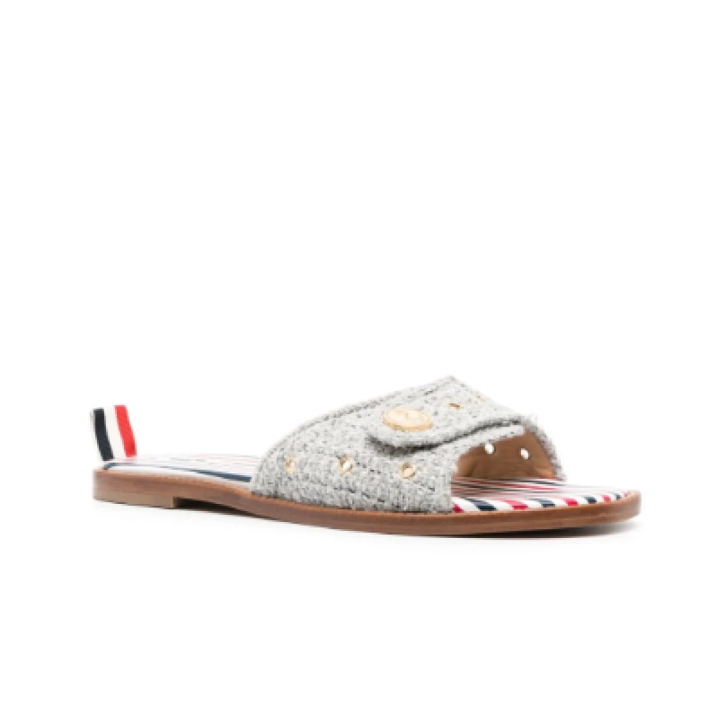 Thom Browne, Sko , Dame, Grå, 36 1/2 EU, Tweed, Tweed Anker Knap Cracket Slides