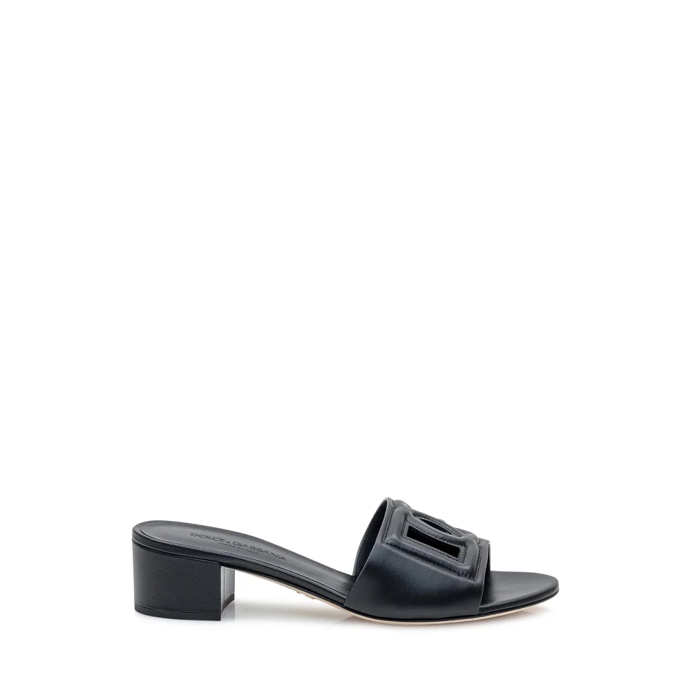 Dolce & Gabbana, Sko , Dame, Sort, 38 EU, Læder, Logo Læder Slides