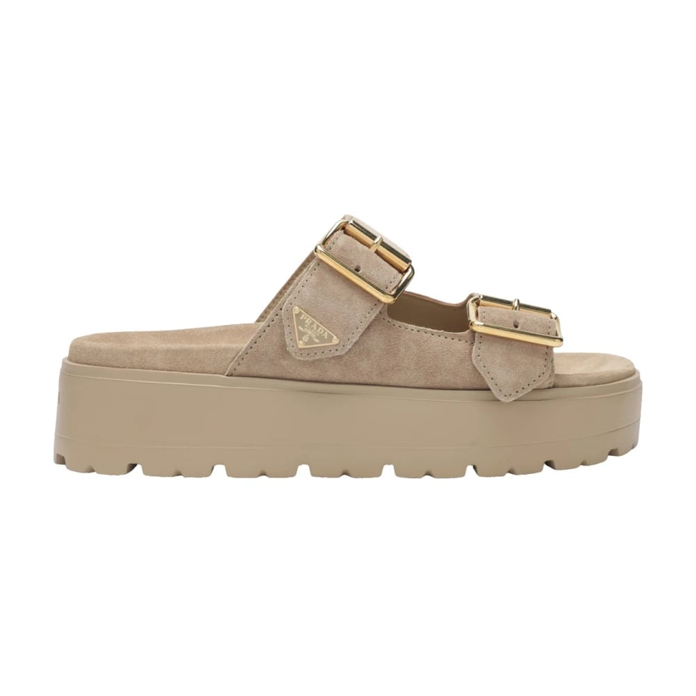 Prada, Sko , Dame, Beige, 38 EU, Suede, Suede Strap Slides