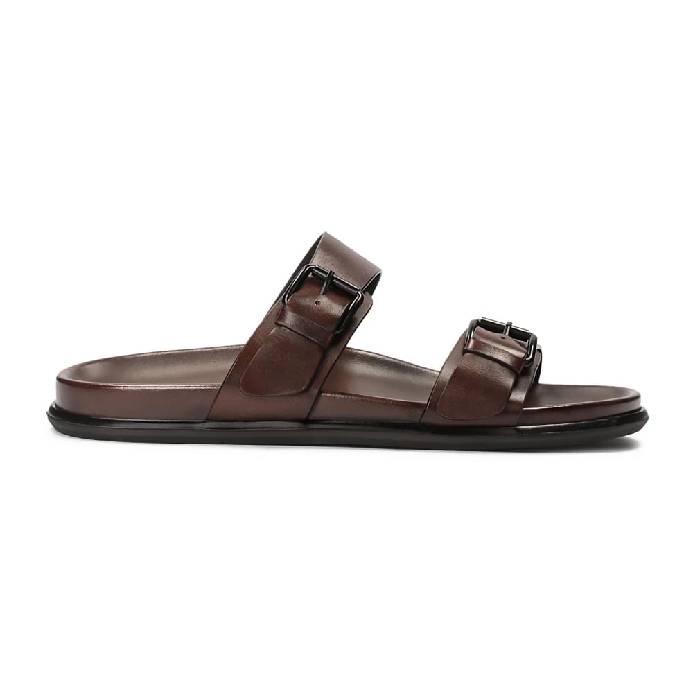 Kazar, Sko , Herre, Brun, 45 EU, Læder, Læderbrune slides med to justerbare remme