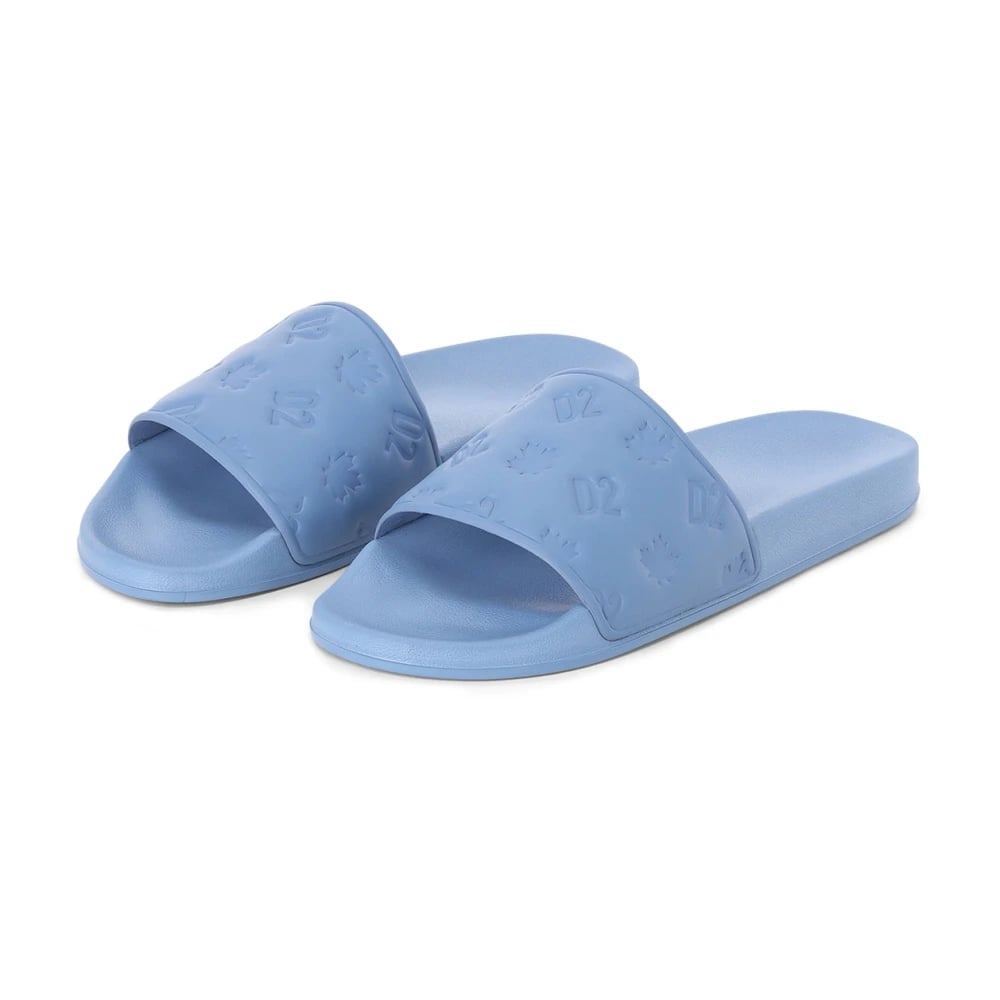 Dsquared2, Sko , Herre, Blå, 44 EU, Uld, Embossed-Logo Slides