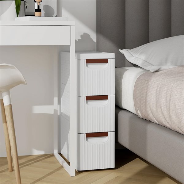 Smal kommode / hurts med 3 skuffer og hjul – Hvid