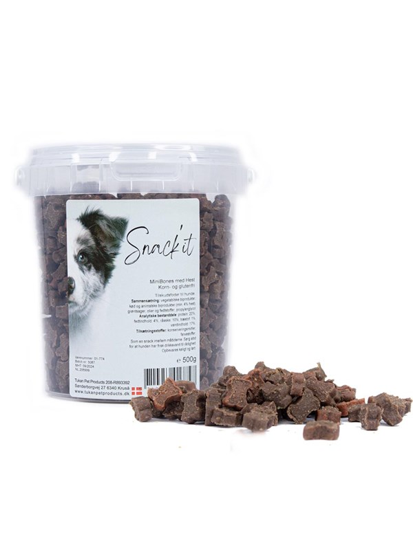 Snack'it - BLAND 3 FOR 108 - Semi-Moist Mini Bones m. Hest KORNFRI 500g