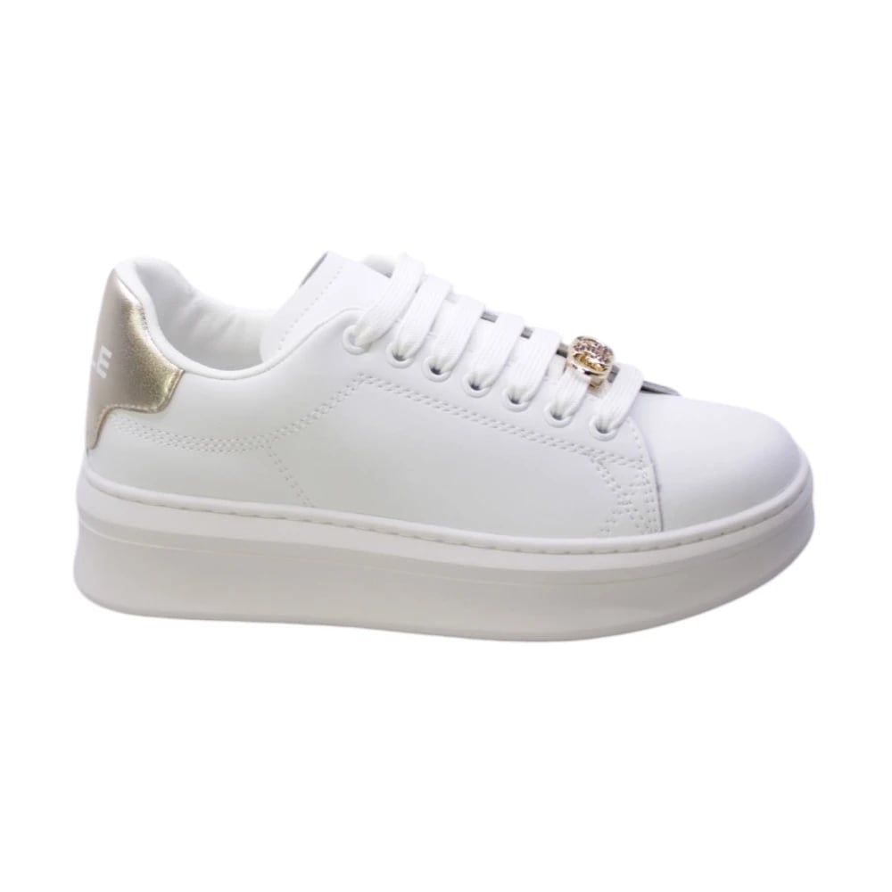 Gaëlle Paris, Sko , Dame, Hvid, 35 EU, Uld, Hvide Eco-læder Sneakers med Guld Detaljer