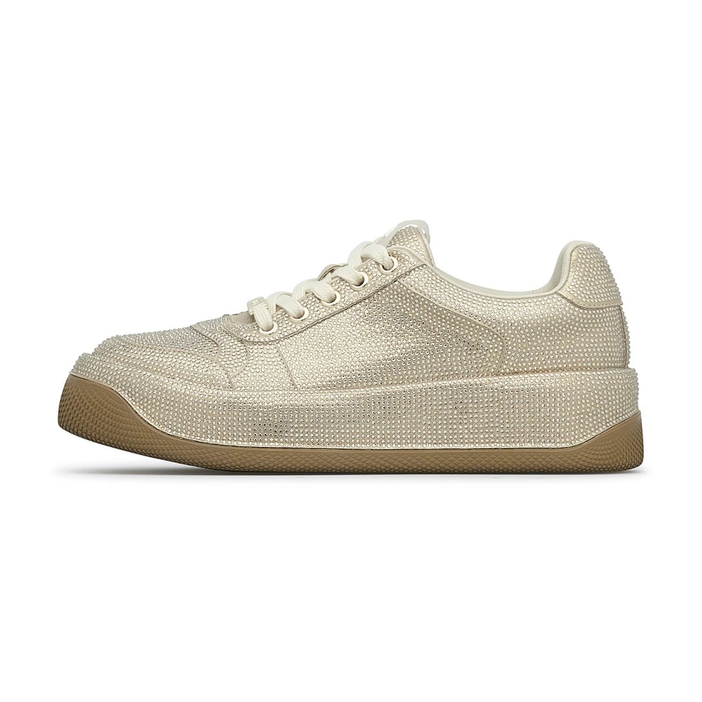 Loriblu, Sko , Dame, Gul, 41 EU, Uld, Sneakers i crosta guld med krystaller over det hele