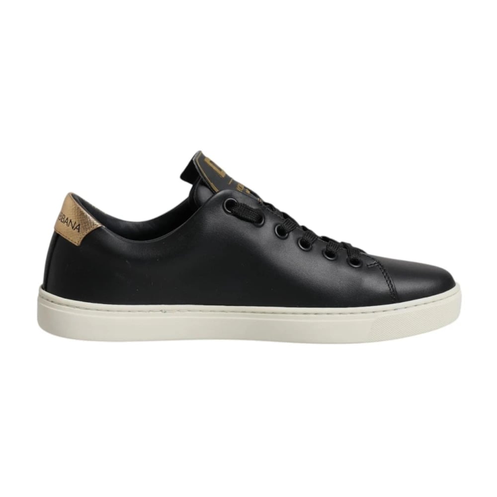 Dolce & Gabbana, Sko , Dame, Sort, 35 EU, Uld, Low-Top Sneakers med Guld Detalje