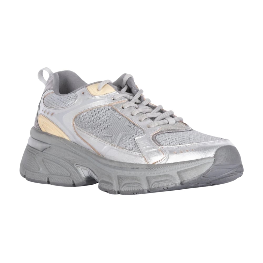 Golden Goose, Sko , Dame, Grå, 38 EU, Uld, Lamineret Lightstar Sneakers Sølv/Guld