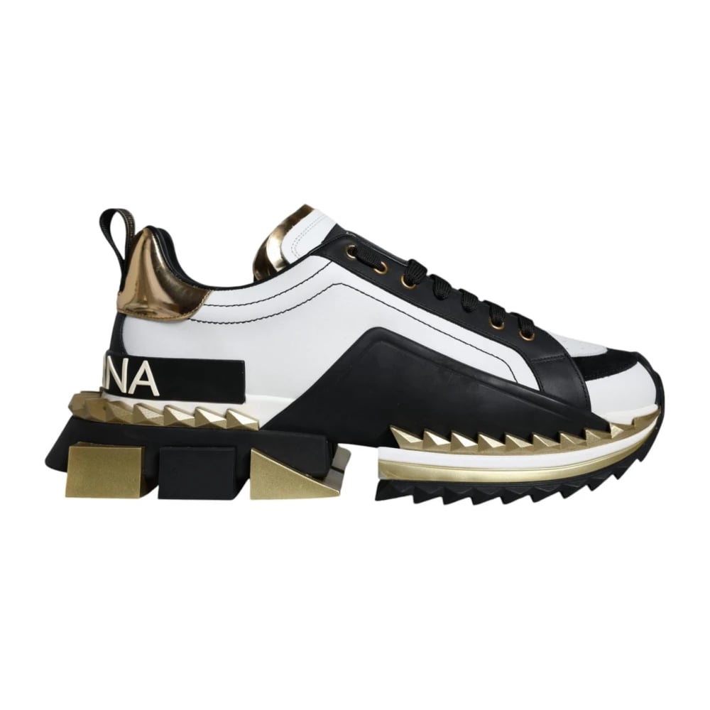 Dolce & Gabbana, Sko , Herre, Flerfarvet, 41 EU, Uld, Portofino Lave Top Sneakers Hvid/Guld