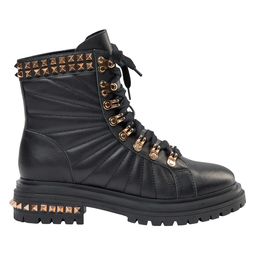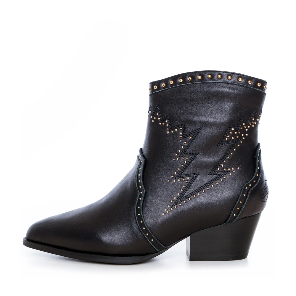 Sofie Schnoor, Sko , Dame, Sort, 40 EU, Læder, Læderstøvler med gyldne detaljer