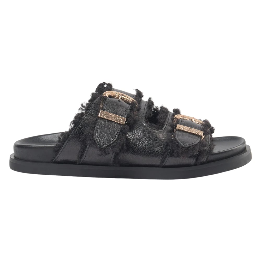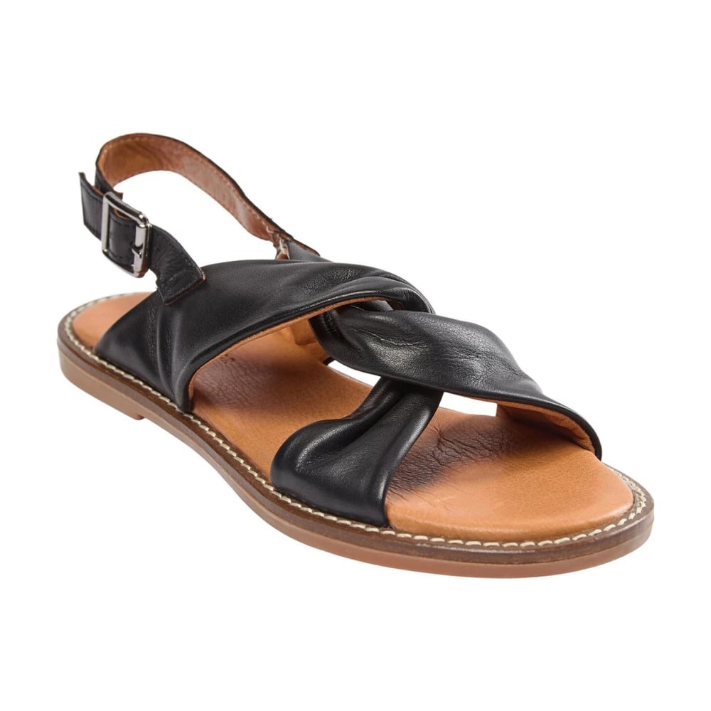 Sofie Schnoor, Sko , Dame, Sort, 41 EU, Læder, Klassiske sorte lædersandaler med gyldne spænder