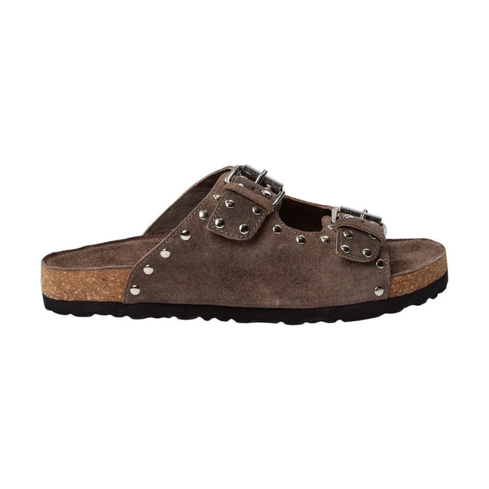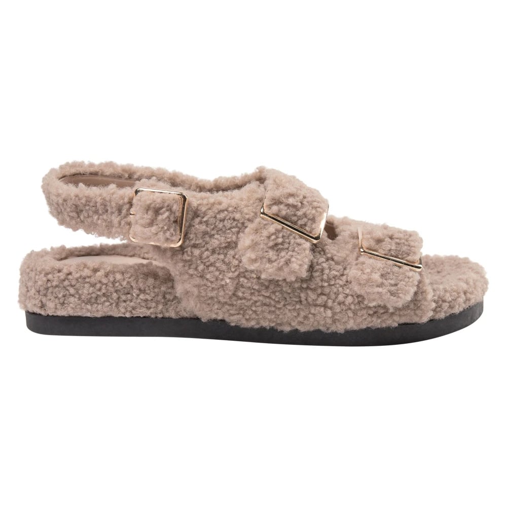 Sofie Schnoor, Sko , Dame, Brun, 39 EU, Uld, Taupe Ruskindssandaler med Sølvspænder