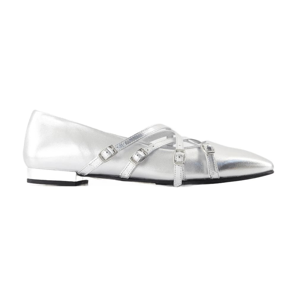 Coperni, Sko , Dame, Grå, 37 EU, Læder, Sølv Metallic Læder Ballerina Bælte Flade