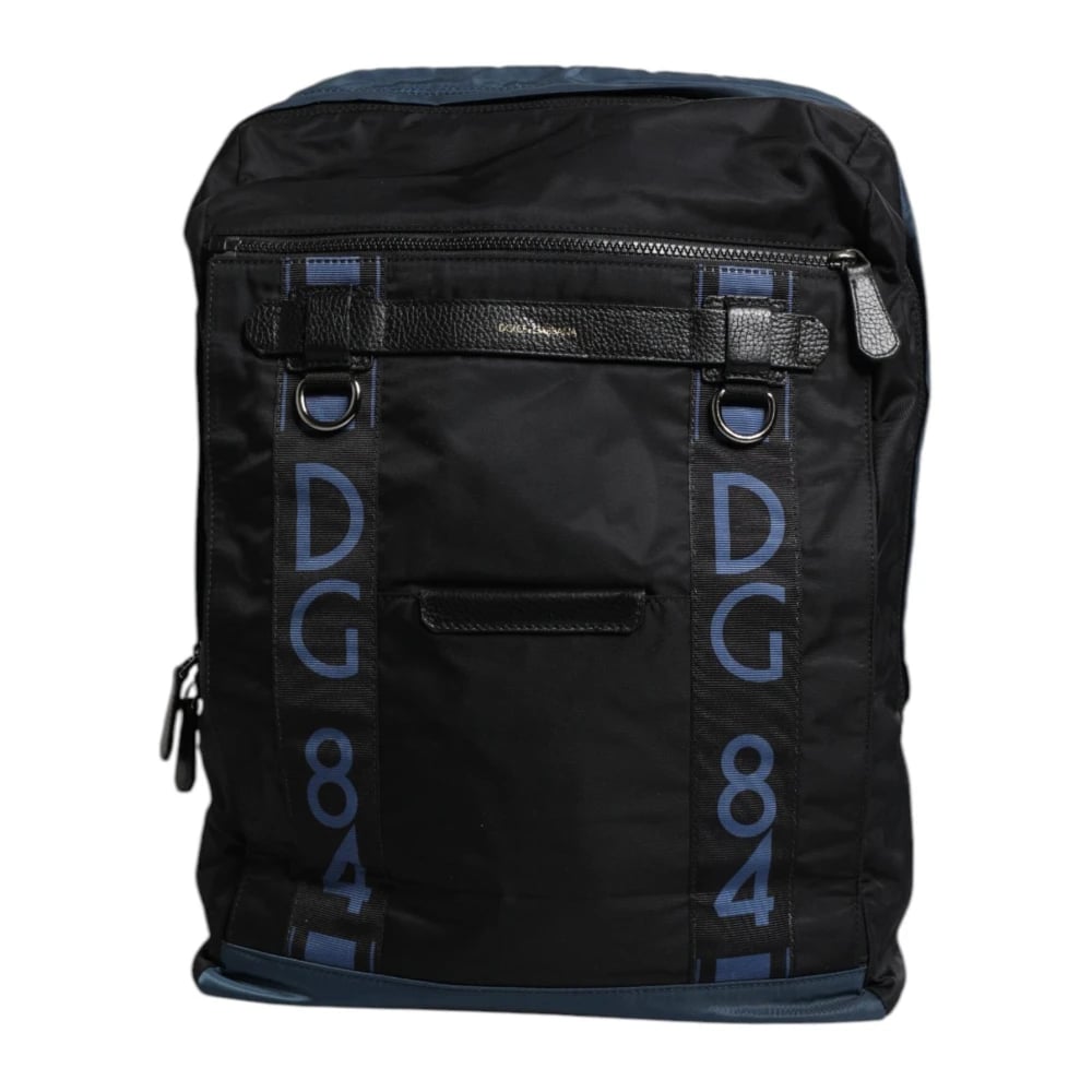 Dolce & Gabbana, Tasker , Herre, Sort, ONE SIZE, Nylon, Leopardforing Nylon Rygsæk Sort Blå