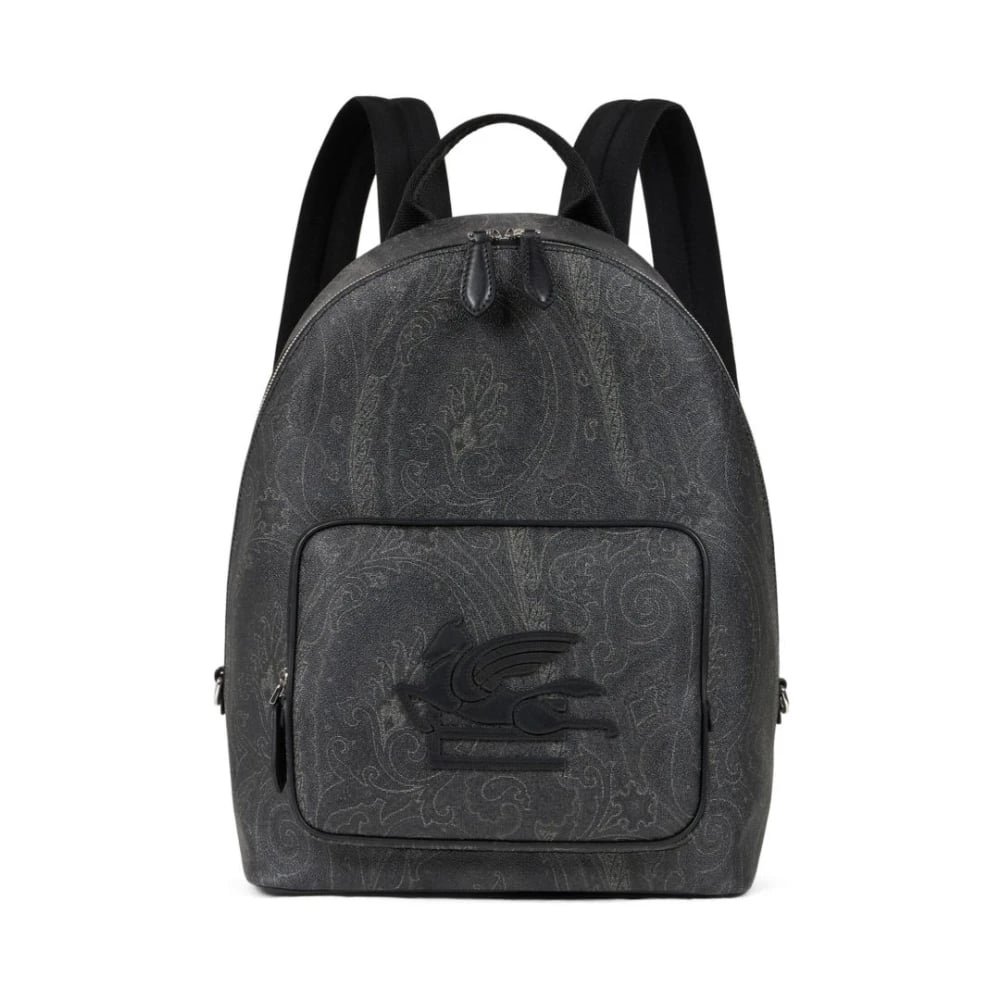 Etro, Tasker , Herre, Sort, ONE SIZE, Sort Paisley Mønster Rygsæk med Logo
