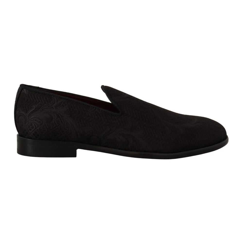 Dolce & Gabbana, Sko , Herre, Sort, 40 EU, Bomuld, Sort blomstret jacquard slippers loafers sko