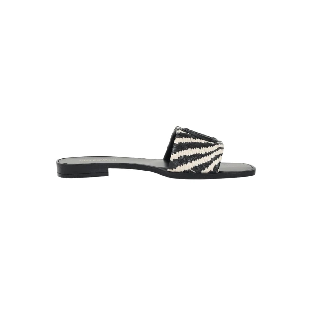 Just Cavalli, Sko , Dame, Sort, 40 EU, Dame sorte slippers med raffiabånd