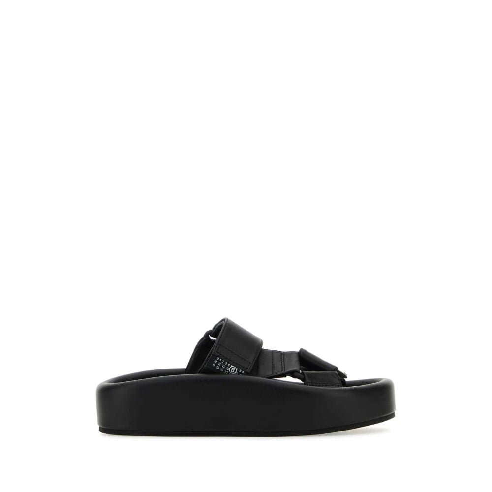 MM6 Maison Margiela, Sko , Dame, Sort, 36 EU, Læder, Sort Læder Platform Slippers