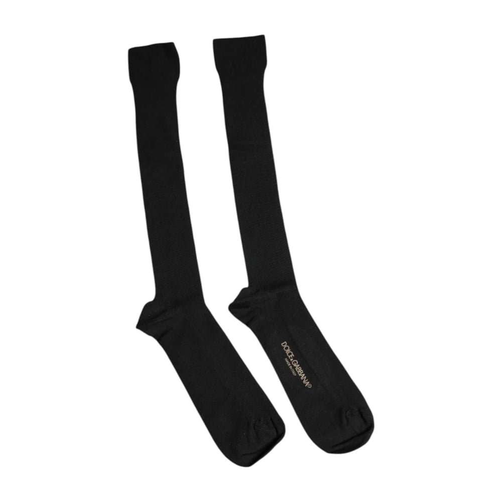 Dolce & Gabbana, Undertøj , Herre, Sort, ONE SIZE, Luksus Logo Viskose Calf Sokker