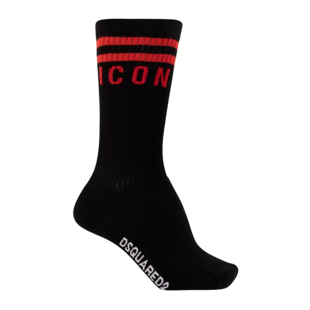 Dsquared2, Undertøj , Herre, Sort, XS, Bomuld, Lange sokker med broderet logo