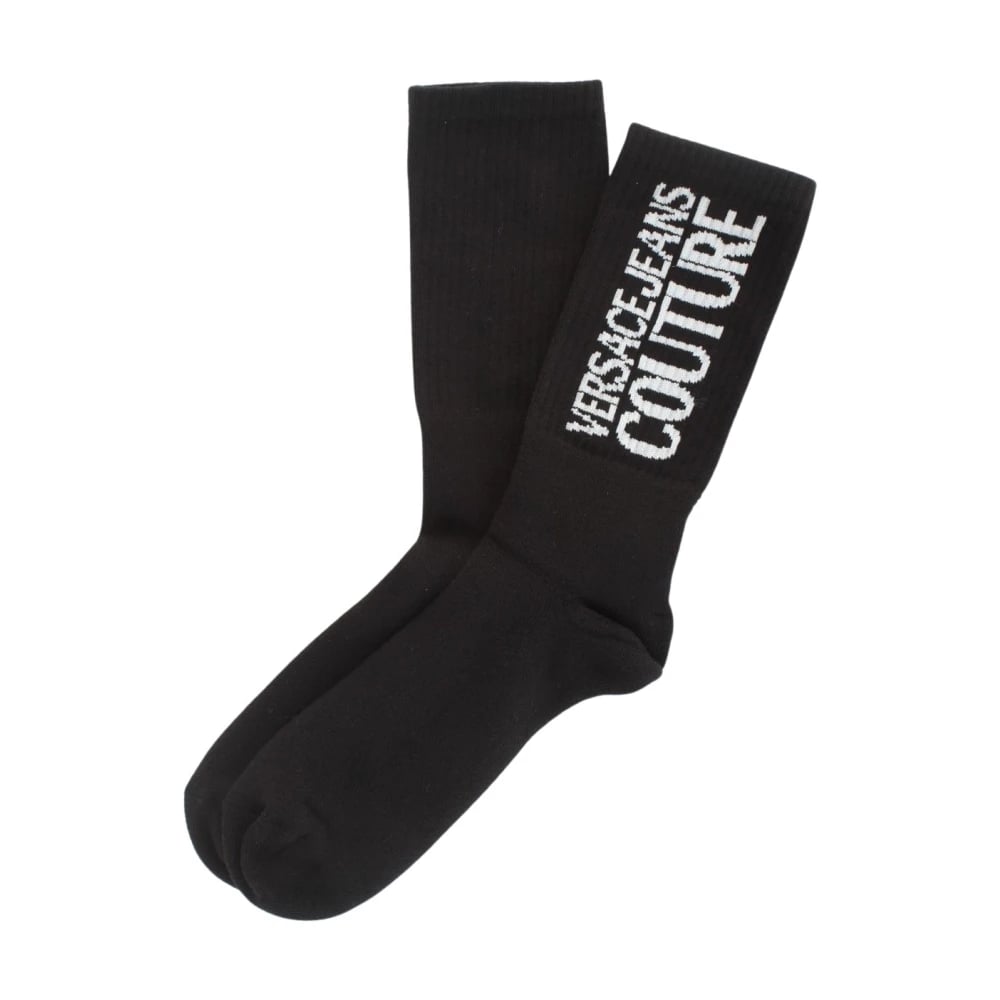 Versace Jeans Couture, Undertøj , Herre, Sort, M/L, Bomuld, Logo Broderet Bomuld Stræk Sport Sokker