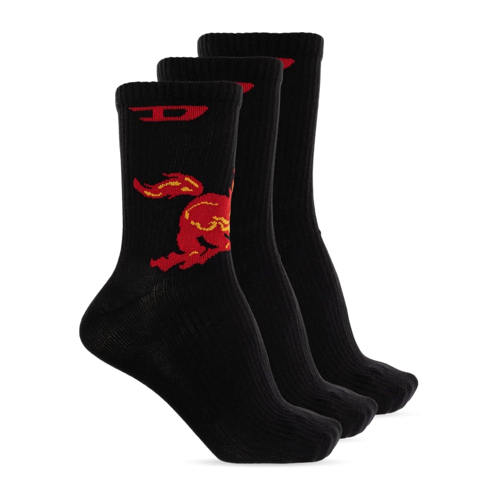 Diesel, Undertøj , Herre, Sort, M, Bomuld, Tre-pak Ribbede Sokker