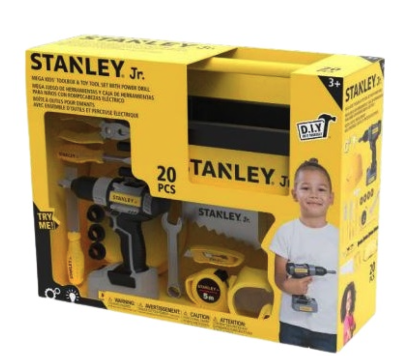 Stanley Jr. - Legetøjsværktøjssæt med boremaskine og opbevaringskasse